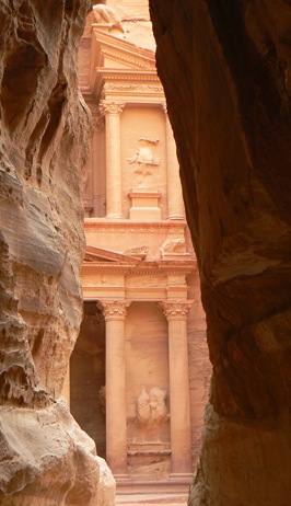 El Tesoro. Una monumental fachada de 40x28 metros tallada a golpe de cincel y martillo en el siglo I dC. Tallada de arriba a abajo y a mayor gloria de su inhumado, el rey nabateo Aretas IV (8 aC-40 dC). A esta conclusión se ha llegado después de muchas discusiones en las que al Kashneh se le consideraba ora un templo ora una tumba nabatea ora una tumba romana.
