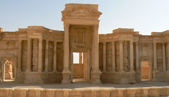 Se trata del Teatro, un teatro para unos 4000 espectadores y que fue felizmente desenterrado en 1966 (en Palmira aún está activa una misión arqueológica italiana).